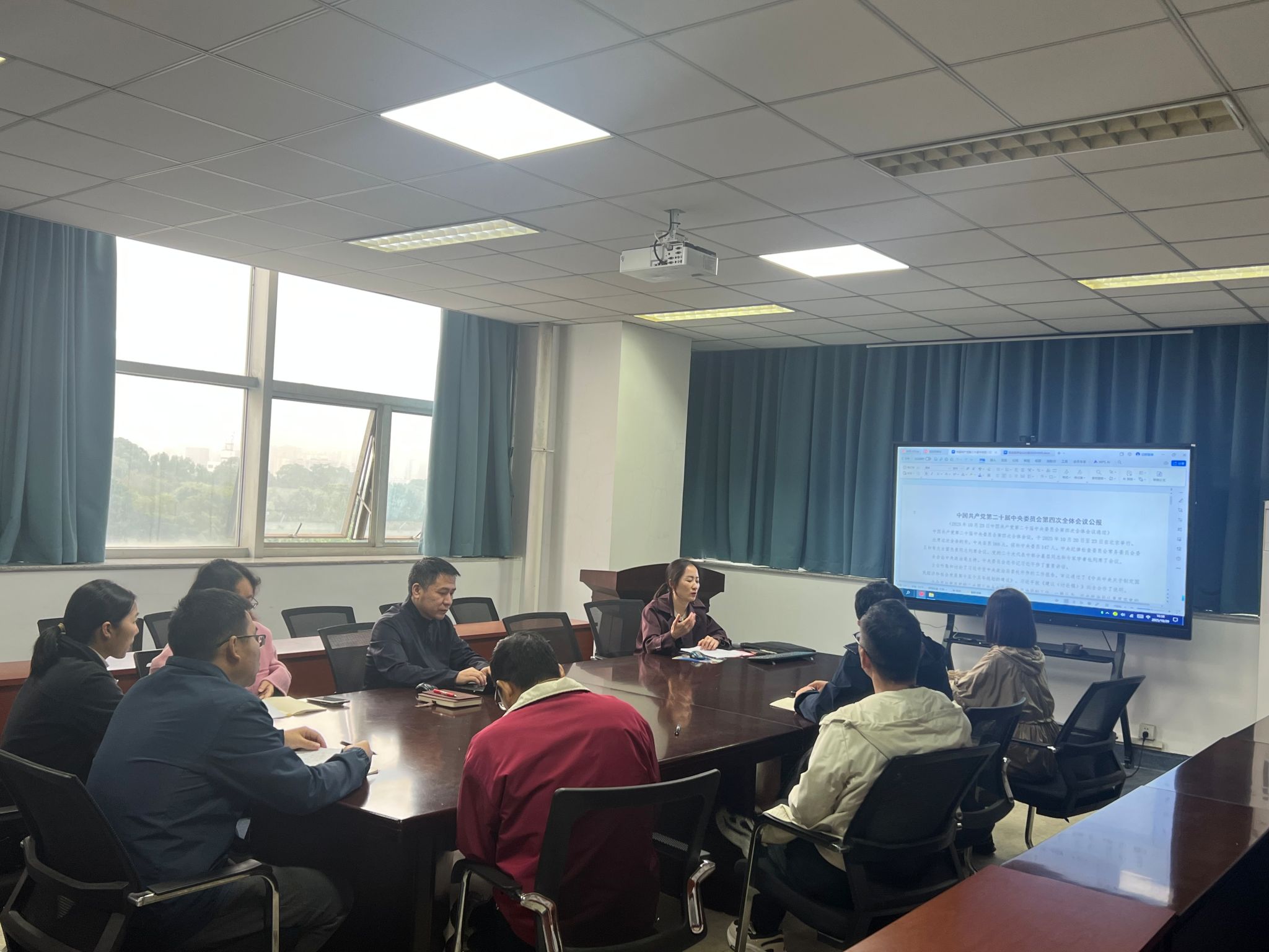 10月29日上午,学院召开党委会(扩大)会议,重点围绕《中国共产党第二十届中央委员会第四次全体会议公报》有关内容,集中传达学习党的二十届四中全会精神,安排部署贯彻落实工作。会议由学院党委书记薛波主持,班子成员、党委委员和系室负责人参会。