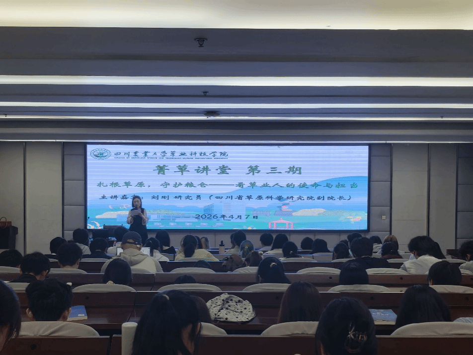 4月7日下午,四川省草原科学研究院副院长、国家牧草产业技术体系副首席科学家刘刚研究员做客草业科技学院精品活动“菁草讲堂”第三期,为全体大一学生分享草业人扎根草原、守护粮仓的故事。