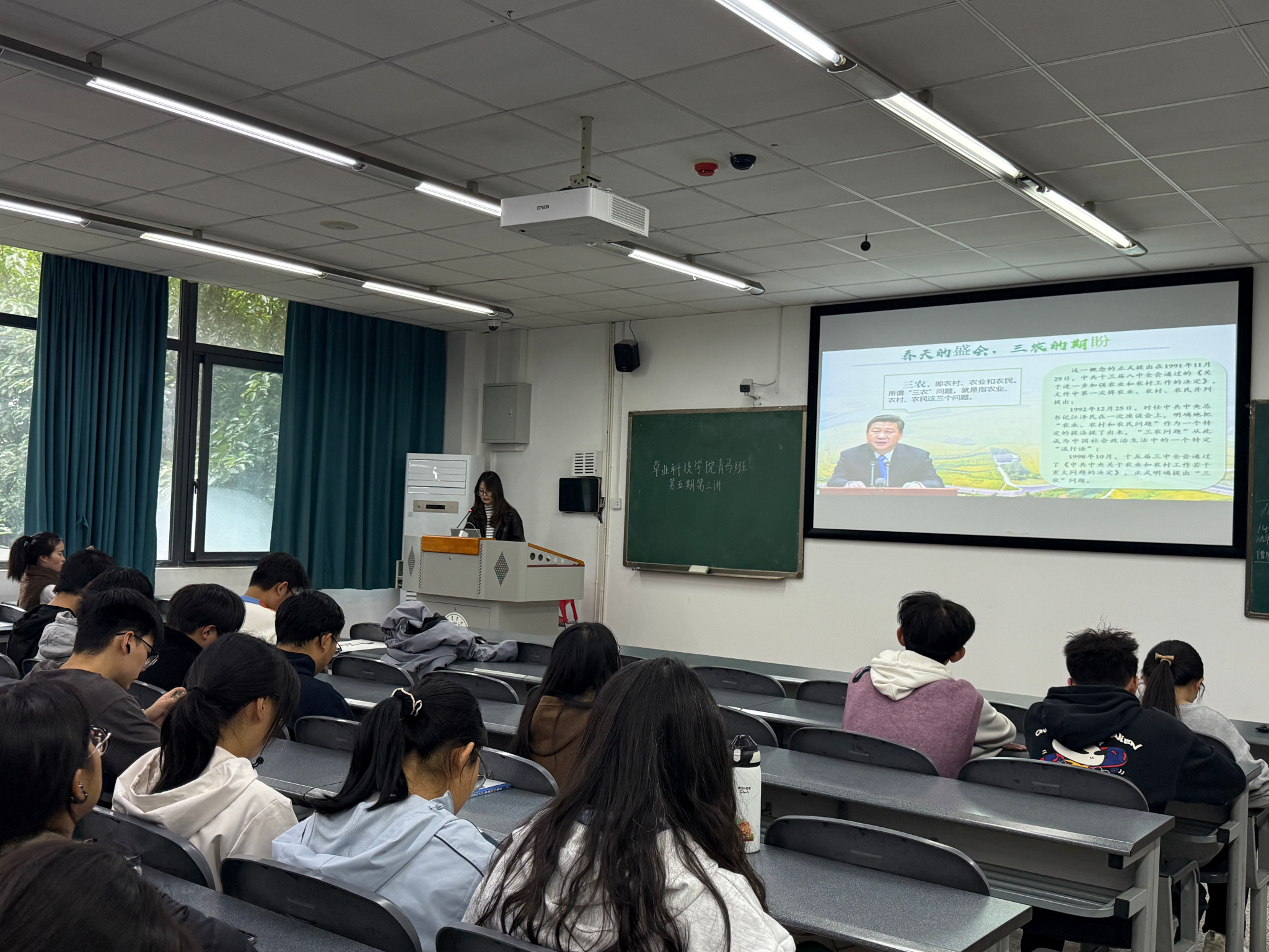 右木理论宣讲团讲师刘静则围绕“农业强国建设”开展专题宣讲,系统梳理了我国“三农”事业的发展历程与辉煌成就,并结合新时代背景深入剖析乡村振兴面临的挑战与机遇。她鼓励同学们强化理论武装、站稳人民立场,将专业学习与国家战略紧密结合,在农业科技攻关、乡村教育、基层治理等领域主动作为,以强农兴农为己任,“把论文写在祖国大地上”,争做懂农业、爱农村、爱农民的新时代青年马克思主义者。