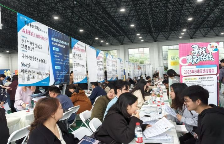 10月29日上午,2026届毕业生秋季双选会在成都校区风雨操场顺利举办。本次双选会学院特邀了10余家行业内知名企事业单位到场招聘,吸引了学院百余名本科及研究生积极参与,现场毕业生投递简历踊跃,展现出积极的求职意愿。