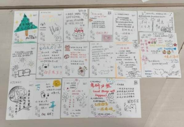 据悉,收到明信片的考研同学纷纷表示:这次活动给予了他们莫大的鼓舞,明信片上的一笔一画、一字一句,都让他们深切感受到来自学弟学妹的真诚祝福与学院的暖心关怀。