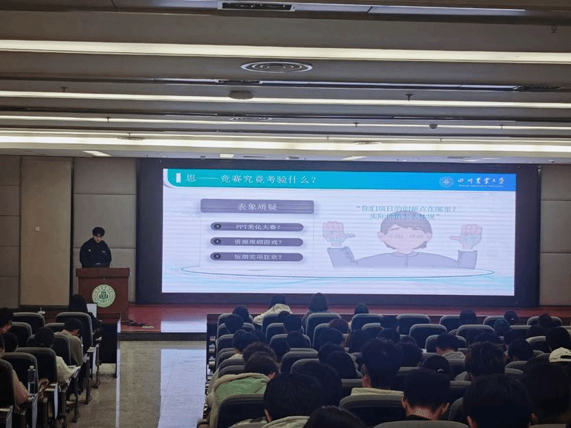刘起麟以“青青逐梦,创享未来”为题,分享了参与各类创新创业大赛的宝贵经验。他深入剖析了大赛的本质,系统讲解了参赛的优势与挑战,并结合自身实践,从项目背景、选题方向等关键环节进行分析,鼓励新生勇于追梦、敢于实践。